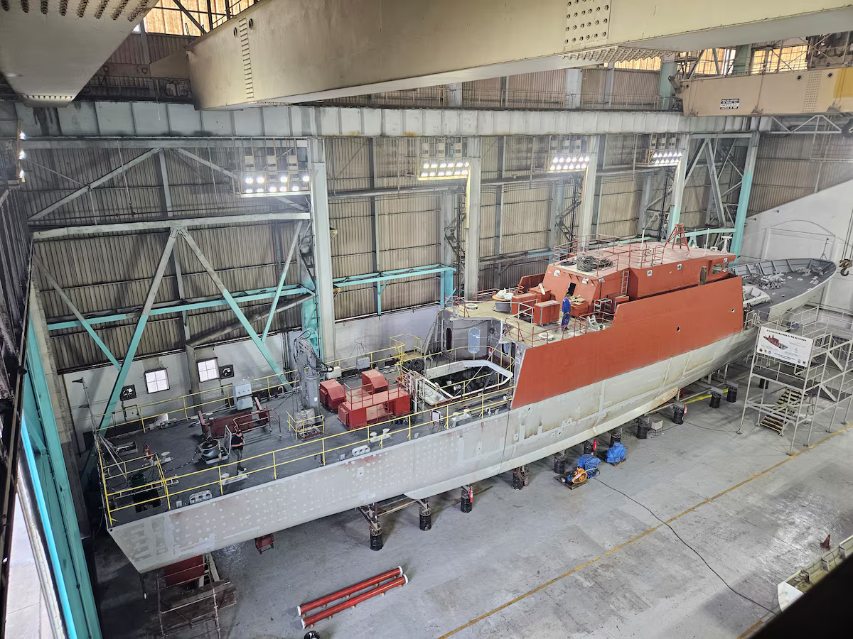 O navio-patrulha de 500 toneladas (NPa-500) Mangaratiba em construção no arsenal da Marinha, no Rio; Força naval precisa de 20 dessas embarcações Foto: Divulgação/Marinha do Brasil