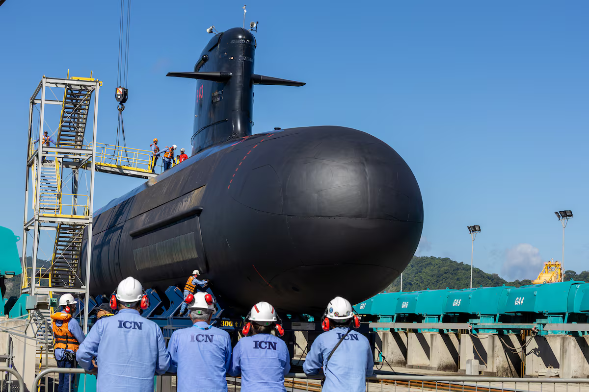 O submarino Almirante Karam (S43), o último dos quatro convencionais das colasse Riachuelo construídos em Itaguaí foi lançado ao mar em novembro de 2025 Foto: Walney/Marinha do Brasil