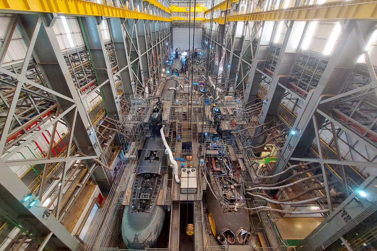 Os estaleiros de Itaguaí, no Rio, durante a construção dos submarinos convencionais skorpène da classe Riachuelo: 4.ª embarcação foi lançada ao mar em novembro de 2025 Foto: Ronaldo Barros dos Santos/Marinha do Brasil