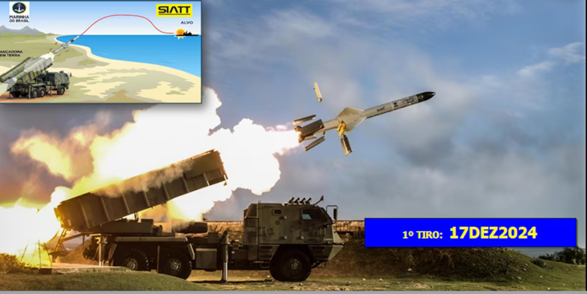 Lançamento do Mansup pelo sistema Astros: primeira bateria operacional foi ativada no dia 14 de outubro pelo Corpo de Fuzileiros Navais, após testes iniciados em dezembro de 2024 Foto: Divulgação/Marinha do Brasil