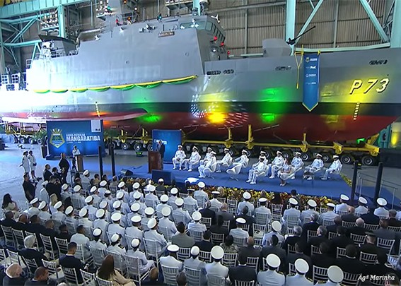 O ministro da Defesa, José Mucio Monteiro, presidiu no dia 27 de abril (segunda-feira), a cerimônia de lançamento do Navio-Patrulha “Mangaratiba” (P73), no Arsenal de Marinha, no Centro do Rio de Janeiro (RJ). A embarcação será empregada em missões de patrulhamento, busca e salvamento, além da proteção de infraestruturas estratégicas, como plataformas de petróleo e gás. A secretária-geral do Ministério da Defesa, Cinara Wagner Fredo, e outras autoridades civis e militares também estiveram presentes.